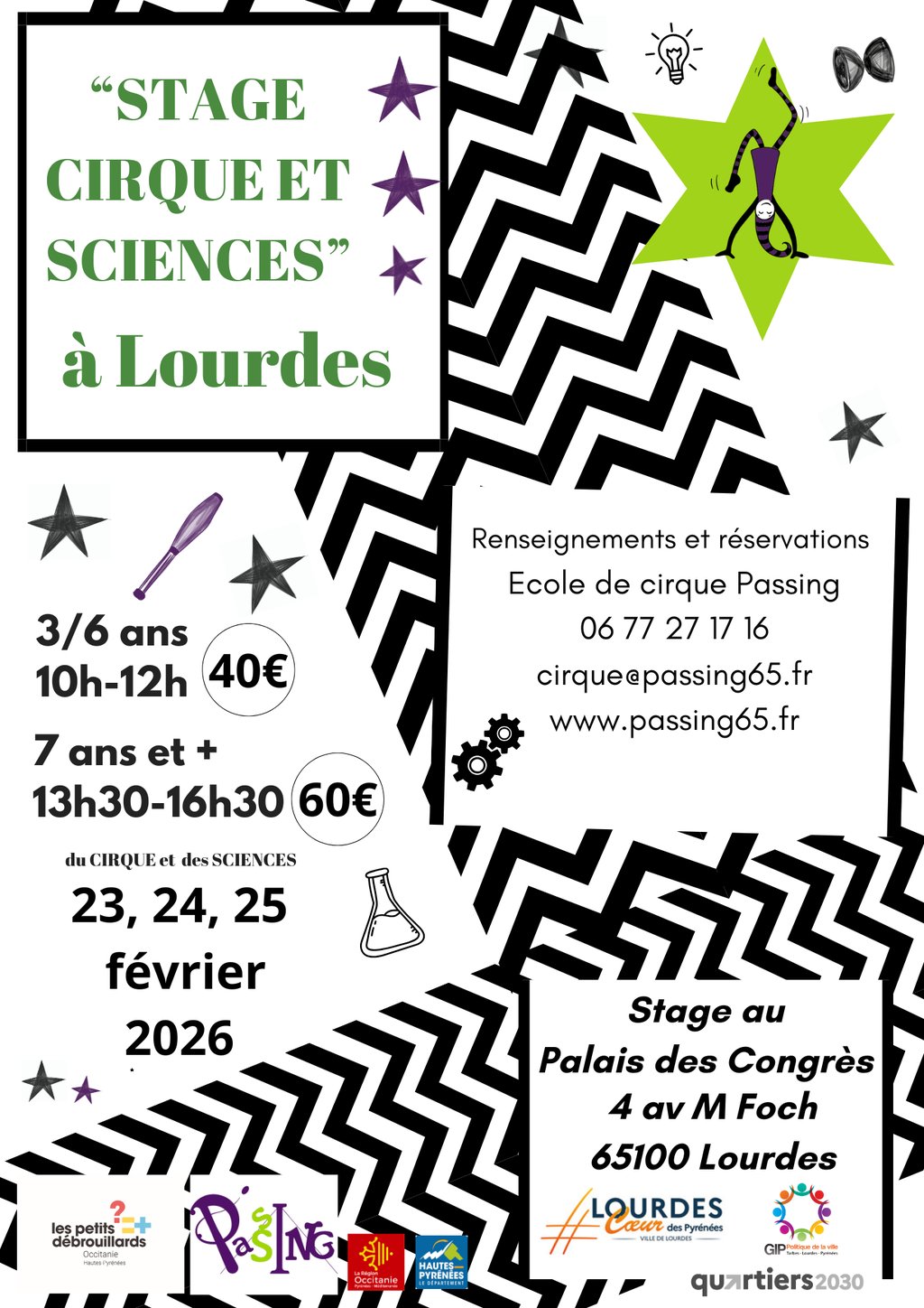 Infos et inscriptions auprès de l'école de cirque Passing au 06 77 27 17 16 ou cirque@passing65.fr